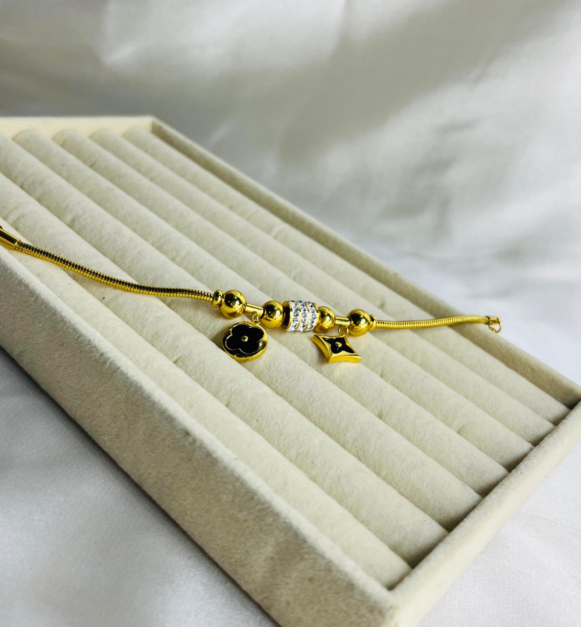 a golden silver bracelet set with square made for queen