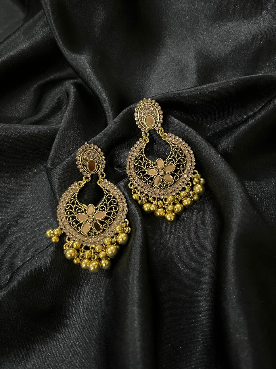 party wear earning with golden beads around with it