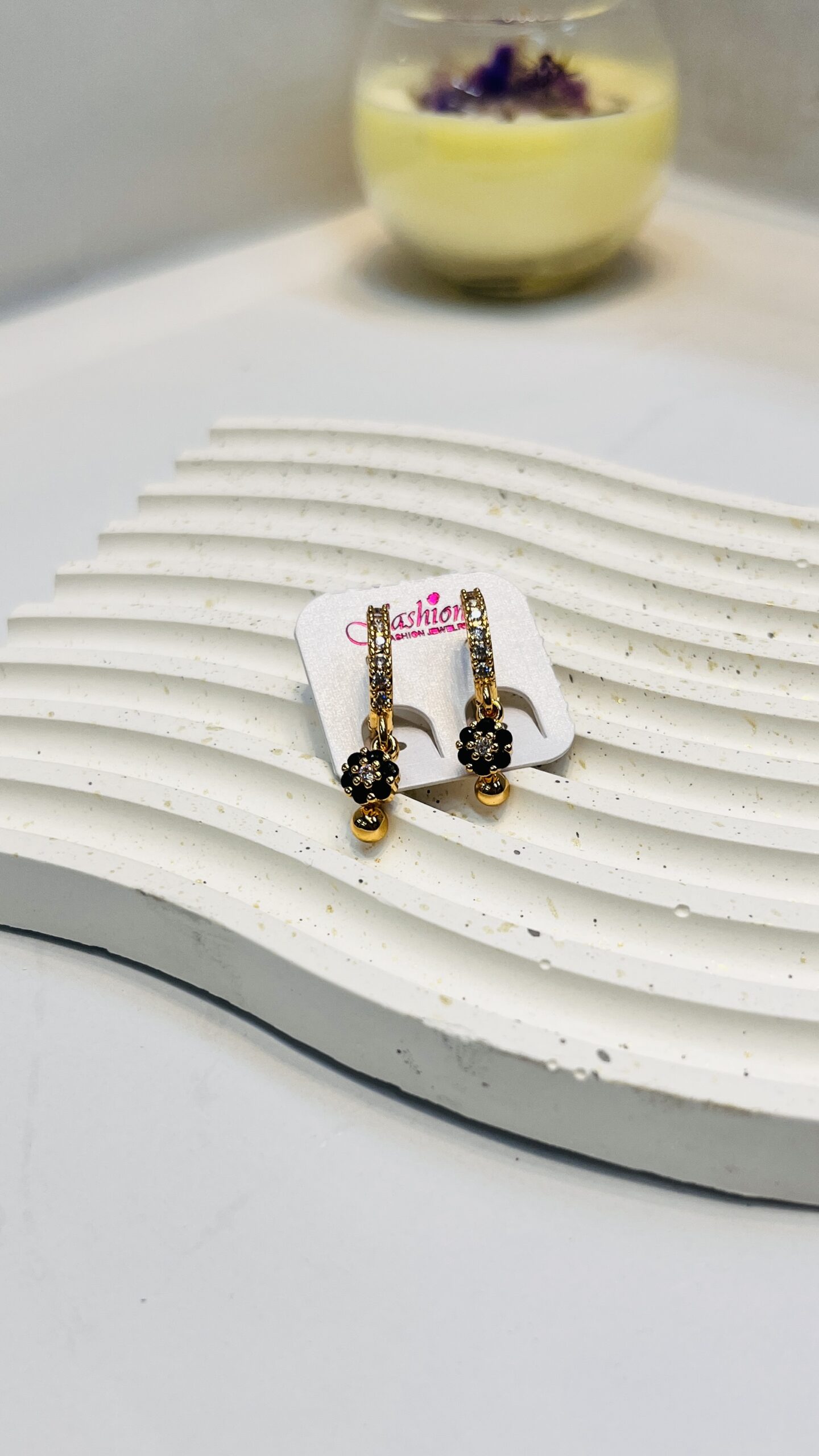 Luxury gold color wedding earrings with silver pattern design, available in Black Flower and Purple Flower styles. Elegant, stylish, and perfect for special occasions.