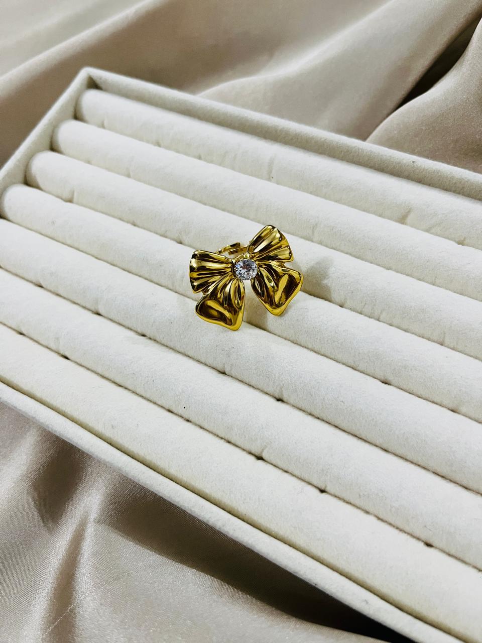 Forged not from fabric, but from high-quality gold-tone alloy, the ring is a masterful sculpture. It is designed to mimic a length of ribbon caught in a gentle, permanent cascade. The band features soft, irregular folds, delicate crumples, and flowing curves that wrap naturally around the finger, creating a wonderfully tactile, three-dimensional surface.