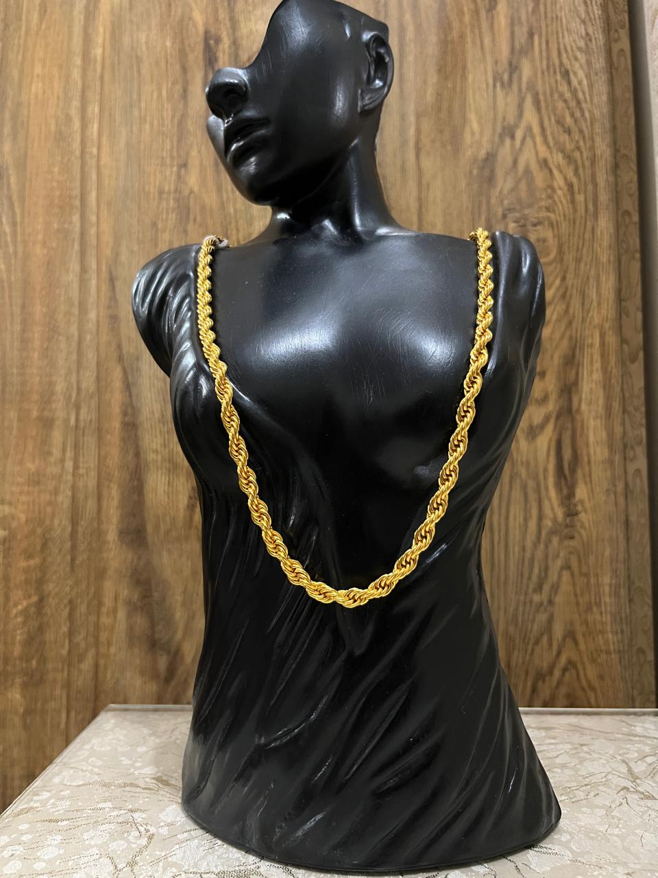 displayed on the mannequin, crafted with interlocking twisted links for a bold, textured look.