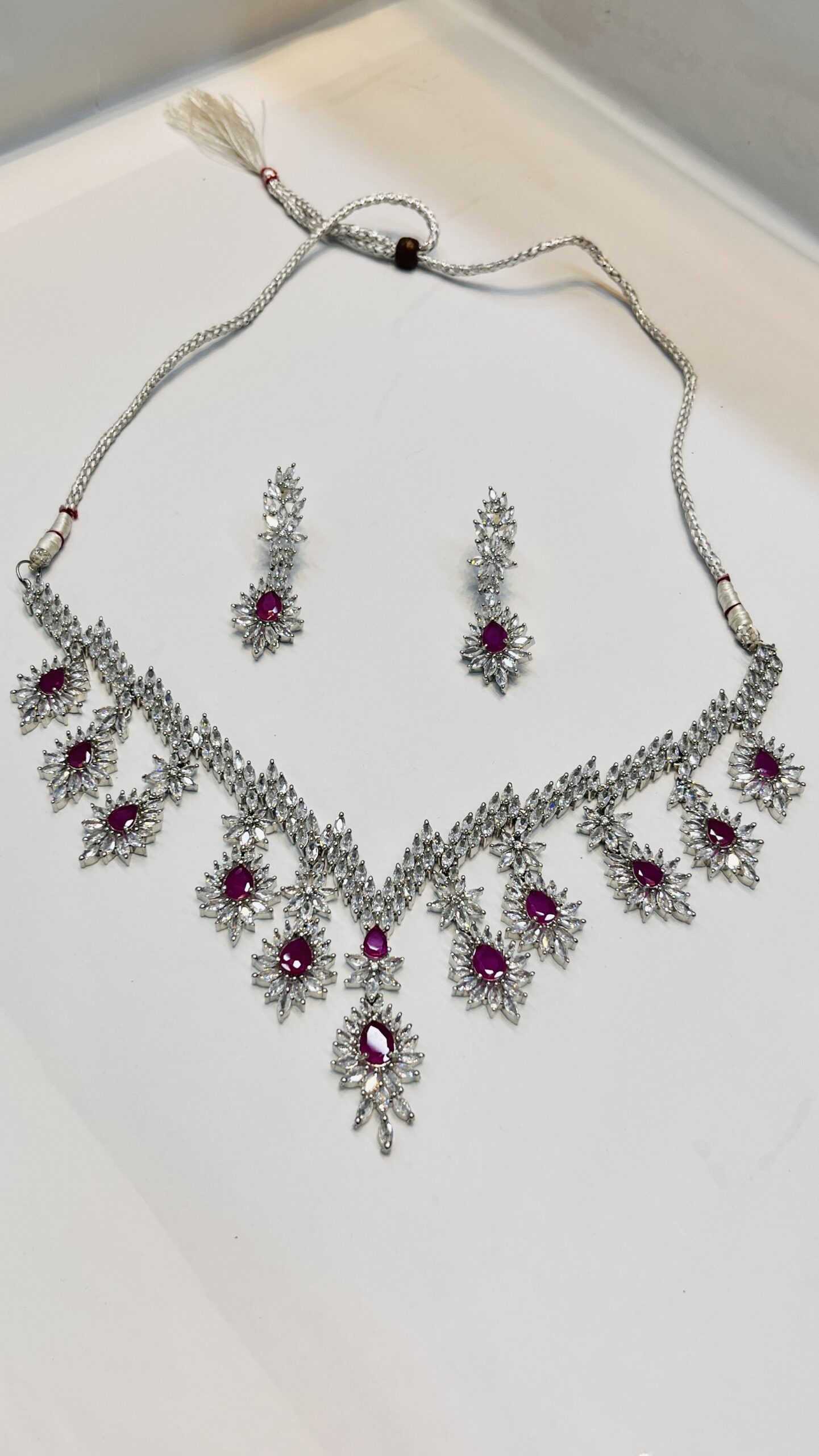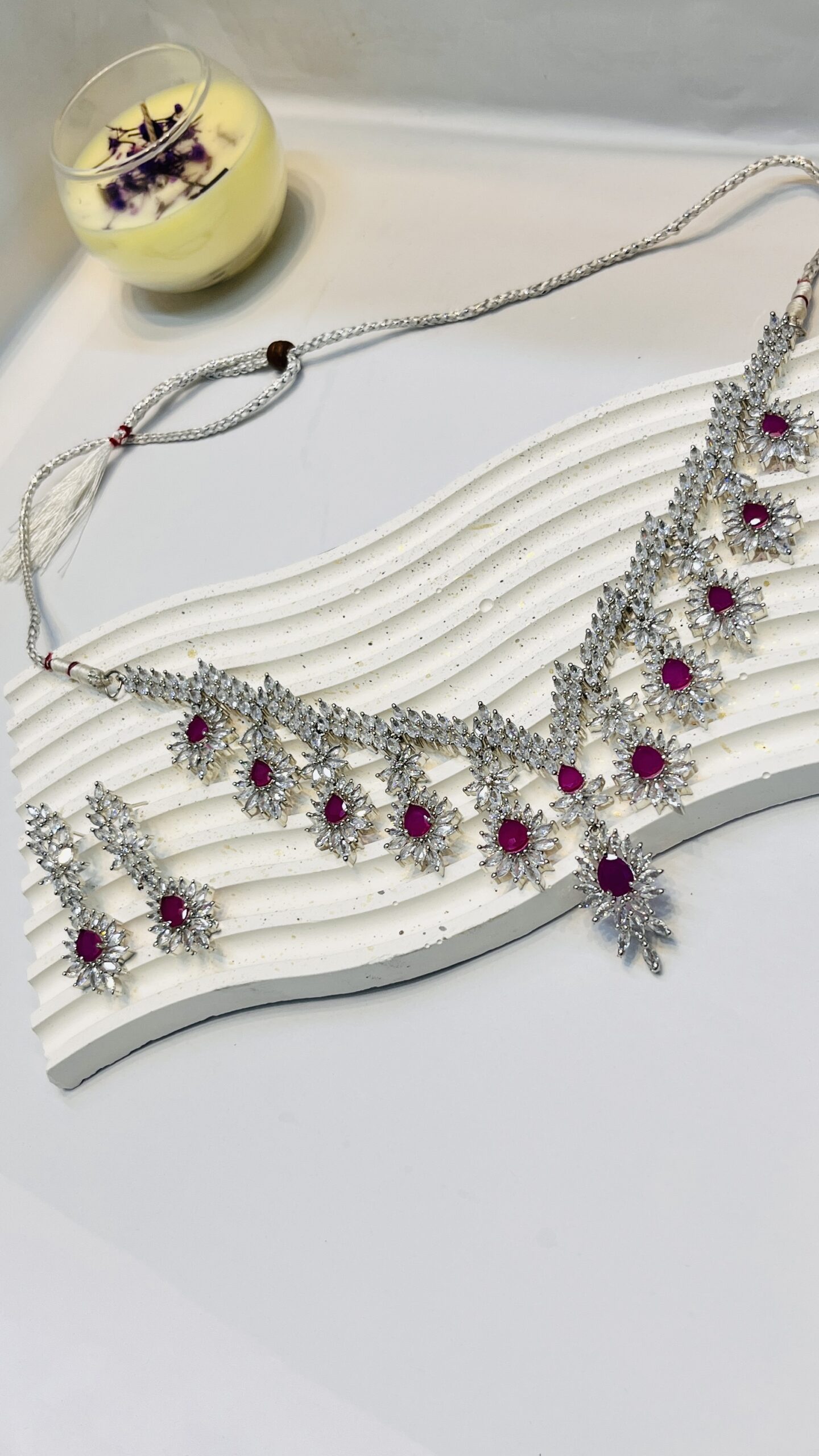Elegant rhodium polish necklace with white gili stones, perfect for Ramzan, Eid, and stylish everyday wear.