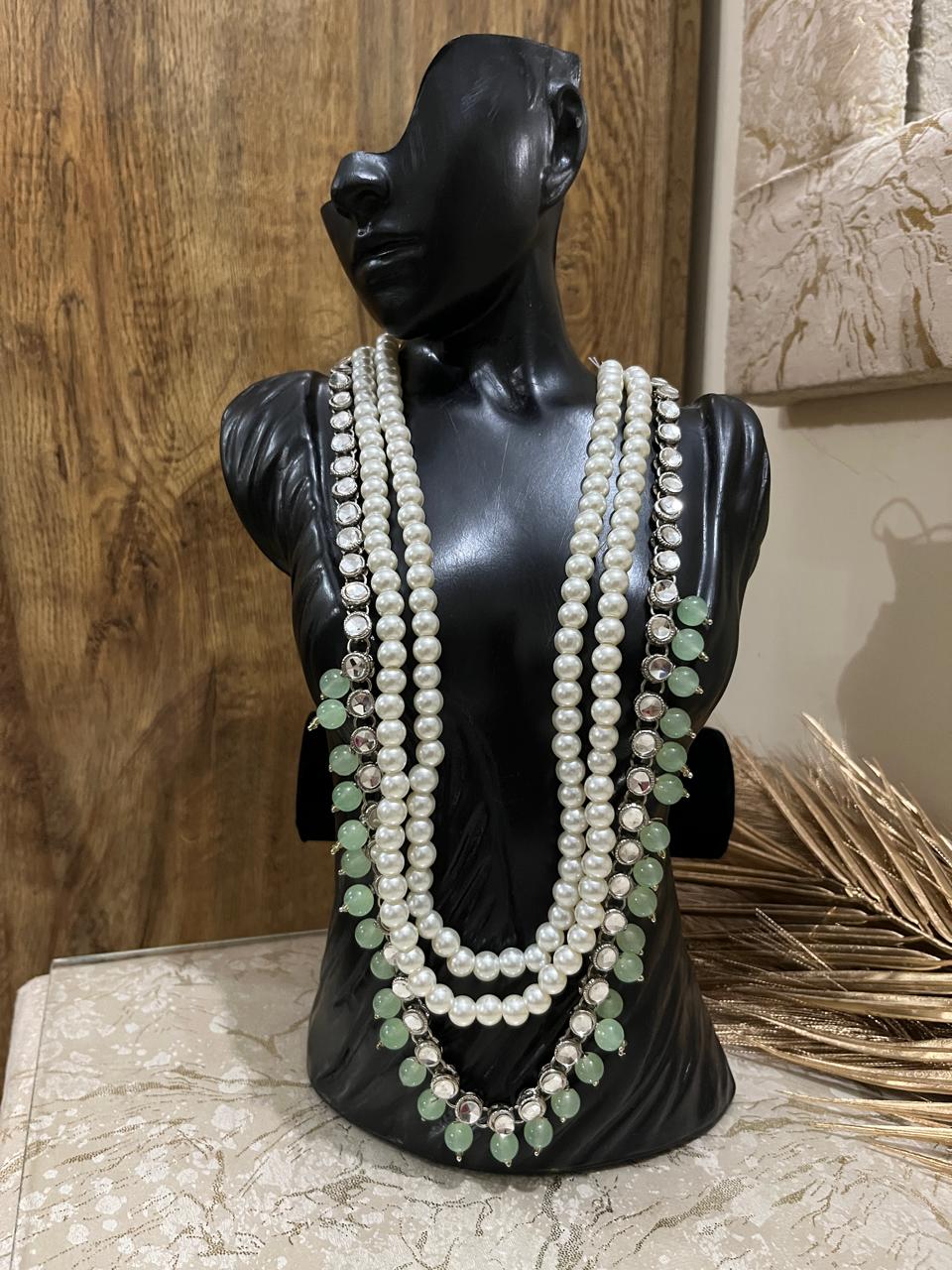 Elegant white and green beads come together in this stunning set, creating a perfect balance of freshness and sophistication for special occasions.
